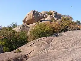 As with Enchanted Rock, Spy Rock is formed of middle Precambrian (1,082 ± 6 million years ago)[2] material. The base of the peak can be reached by the public, but the dome itself is on private property and accessible only with property owner's permission.[3][4] Federal and state statutes, regulations and rules governing trespassing, archeological sites and historic sites apply.[5] The state Game Warden as a commissioned peace officer is authorized to inspect natural resources and take necessary action for the preservation of the resources.[6]