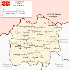 The region includes settlements in the Pčinja river valley, parts of the mountainous regions of Kozjak (Kozjačija), German, Rujen, which are today located within the Municipality of Staro Nagoričane; roughly from Pčinja and the lower course of the Kriva Reka.[1] The region borders Serbia to the north, and the historical and geographical regions of Slavište and Stracin.