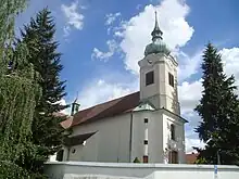 The main landmark of Střelice is the Church of the Holy Trinity. It was built in the late Baroque style, but it has a medieval core. Its present form is the result of the reconstruction in 1932.[7]