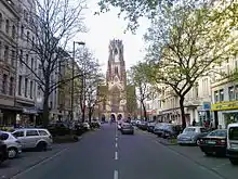 St. Agnes is a neogothic Catholic church in Neustadt-Nord, Cologne, Germany. It was consecrated in 1902 and is the second-largest church in Cologne after the Cologne cathedral. St. Agnes is 80 metres (260 ft) long, 40 metres (130 ft) wide and occupies an area of 2,155 square metres (23,200 sq ft). The tower has a height of 61 metres (200 ft). The church is named after Agnes of Rome.