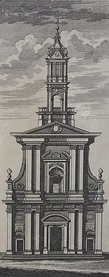 The building of the church in baroque style commenced aroun 1720, to a design by Isaac Wills.[2] The current façade dates to 1868.[3][4][5]