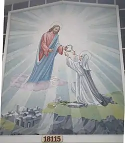The parish was established in 1949 by Monsignor John Hackett. It originally included areas that later became parishes of St. Bridget of Sweden Church, Our Lady of Lourdes, and a large portion of St. Joseph the Worker parish. When the parish was first established, and before the first parish church was built, Mass was celebrated in the Reseda Theater just down Sherman Way.[1] In 1950, church services were moved to the building that now serves as the parish hall.