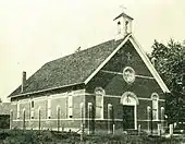In 1895 St. Joseph church (left) was built just south of the railroad tracks on the east side of the highway, and the parish was divided at Jackson Street.[2]:23 St. Joseph closed in 1956, to the dismay of some in its close-knit community.