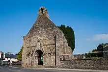 The grounds include part of a 12th-century Romanesque church which was demolished in 1812 to make way for the construction of the current church. Only the western gable of the original church remains, including a bell-cot which was added at a later date. Stones and material from the original church were used for the new building.[2][1][3] The original church is registered as National Monument number 126.[4]