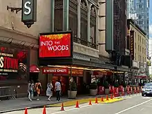 On March 12, 2020, the theater was temporarily closed due to the COVID-19 pandemic,[279] and Frozen was canceled as a result.[280] The St. James was the first Broadway house to reopen after the pandemic-related closure,[281] with a limited run of Bruce Springsteen's Springsteen on Broadway shows opening on June 26, 2021.[282] As part of a settlement with the United States Department of Justice in 2021, Jujamcyn agreed to improve disabled access at its five Broadway theaters, including the St. James.[283][284] David Byrne's American Utopia opened later the same year and ran until early 2022.[285] This was followed in July 2022 by a limited run of the musical Into the Woods,[286] which was extended through January 2023.[287] Jujamcyn and Ambassador Theatre Group agreed to merge in early 2023; the combined company would operate seven Broadway theaters, including the St. James.[288][289] New York, New York, Kander and Ebb's musical adaptation of the film New York, New York, opened at the theater in April 2023, running for three months.[290][291] A revival of Spamalot, transferring from the Kennedy Center,[292] opened at the theater in November 2023.[293][294]