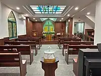 In February 1999, when Rev. Chen Hong-Hsing (陳宏行) came to the church for the second time as pastor, he moved the chapel from the third floor to the first floor, and made the entrance glass-walled so that people could easily enter from the street. The altar was changed to colored glass to create a cross of resurrection, and the ceiling was also made of colored glass to create a modern and bright interior. Also, the vestry was changed to become a multimedia control room, and the projection screen could be lowered electrically.