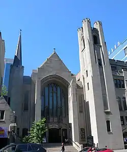 The church moved several times, acquiring its first owned building, a former Baptist church on 43rd Street, in 1863. It moved in 1875 to 233 West 42nd Street, into the former Forty-second Street Presbyterian Church.[2] Finally, the congregation acquired property at West 46th Street to build its current church. The cornerstone was laid in October 1922 and the church dedicated in September 1923.[4]