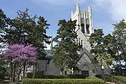 The St. Margaret Mary Church is a parish of the Catholic Church in Omaha, Nebraska, part of the Archdiocese of Omaha. The limestone church with High Gothic bell tower is prominently situated on a ridge overlooking Elmwood Creek along the original route of the Lincoln Highway, today known as U.S. Route 6 in the Fairacres Historic District. Adjacent to Memorial Park (Omaha) and the University of Nebraska Omaha it is widely known for its display of an enshrined relic of St Margaret Mary Alacoque, the French Catholic Visitation nun and mystic who promoted devotion to the Sacred Heart of Jesus.