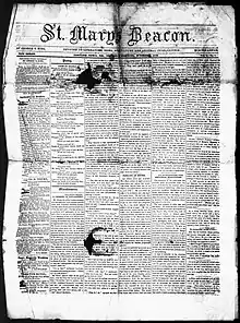 - ↑ "About St. Mary's beacon". Chronicling America. Library of Congress. Retrieved 5 March 2018.