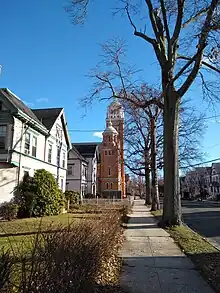 The 1904 colonial revival-style St. Joseph church building and neighboring 1885 Queen Anne-style rectory building are listed as contributing structures within the Whitney Avenue Historic District.[11]