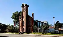 St. Monica's Church is a historic former Roman Catholic parish church in the Diocese of Brooklyn, located in Jamaica, Queens, New York. It was built in 1856 and is a brick basilica-type building in the Romanesque style. It features a four-story entrance tower in the center of its three-bay-wide front facade.[2] Saint Monica's Church has been refurbished on the Campus of York College as a child care center.