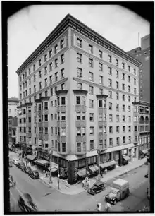 The building was in the Historic American Buildings Survey,[3] but it was demolished in 1973.[4] A supposed fire had led to the hotel's conversion to an office building when the gabled roof and arched entrance were removed and four floors were added[5] with a restaurant added and Turkish bath installed in the basement. The St. Nicholas Hotel was one of four structures in St. Louis by famed architect Louis Sullivan.[6]
