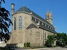 St. Patrick's Church is a historic church building at 1598 South Main Street in Fall River, Massachusetts. It was built in 1881 from local Fall River granite, and added to the National Register of Historic Places in 1983.