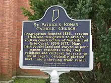 - ↑ "St Patrick's Roman Catholic Church", Indiana Historical Bureau