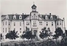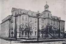 The 25-bed, 4-storey wood-frame building cost $28,000.[4] It was designed and constructed by Mother Joseph of the Sacred Heart[6] and named after the then-bishop, Paul Durieu of New Westminster.[7] Mother Mary Fredrick from Astoria, Oregon was the first mother superior and administrator to lead its charge.[7] In keeping with the philosophy of the Sisters of Providence, the new hospital was founded on the pledge of providing compassionate care for everyone in need – tested by a surge in Vancouver's growth brought on by the Klondike gold rush in the 1890s.