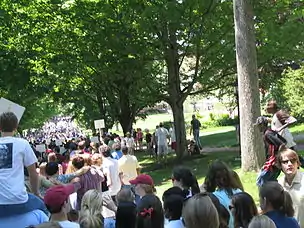 In May 2017, the school issued a report, led by former Massachusetts Attorney General Scott Harshbarger, detailing sexual misconduct by 13 former faculty and staff members (including Gerry Studds) that occurred between 1948 and 1988. The report did not focus on any allegations that occurred after 1988.[63] Sexual misconduct documented in the report covered assaults, harassments, and rape. One student who contacted The Boston Globe, but not the people conducting the report said, "It's not a complete accounting. It's nowhere close."[63] Any further historical allegations are reported by an independent overseer.[64][65]