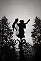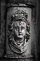 The south portal is somewhat more mysterious. It portrays two animals, at left perhaps a griffin[7] or another dragon,[8] and at right a lion. The two beasts may likewise be engaged in battle.[9] An opposition between good and evil, similar to that on the west portal, is likely intended, perhaps with reference to medieval animal stories such as those found in the Physiologus.[10]