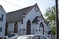 St. Peter's Episcopal Church, now known as The New Saint James Holiness Church of Christ Disciples, is a historic Episcopal church in Norfolk, Virginia, United States. It is a frame, gable-roofed building with two contiguous sections: 1) the sanctuary built in 1886; 2) and the fellowship hall (originally called the "parish house") built in 1912. The church building is in the Gothic Revival style. The building features a small gable-roofed arched entrance door and large and small arched stained-glass windows. St. Peter's is one of six mission churches that descended from St. Paul's. St. Peter's Episcopal Church operated at this location until 1959, when it was transferred to the African-American trustees of Garretts Independent Community Church. In 1967, St. Peter's was transferred to the trustees of what come to be known as Saint James Holiness Church of Christ Disciples.[3]