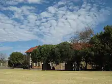 By the 1940s, the school's environs in the Germiston CBD were undergoing rapid industrialisation, concurrent with a general shift from north to south of much of Germiston's population, and in 1948 St Catherine's School relocated to the then newly developed suburb of Parkhill Gardens. Here there was also more space for sporting facilities.[2] The new school buildings were designed in a toned-down Romanesque Revival style, influenced by the late-nineteenth and early-twentieth century Arts and Crafts Movement, by the Irish Catholic architect Brendan Joseph Clinch, an associate of Herbert Baker.[3][4]