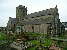 The church is dedicated to the 6th century Celtic saint, Crallo,[1][lower-alpha 1] supposedly related to both Saint Illtyd and Saint Canna.[2] The village in which the church is situated, Coychurch is known in the Welsh language as Llangrallo; Llan – Church, Grallo – Crallo, the church of Crallo.[3] It is believed that the saint founded a church on the site before the construction of the present medieval building.[2]