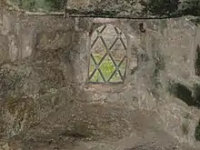 Hermit's window. Tradition has it that this low window in the church is where the hermit St. Doulough placed his plate in the hope of receiving food