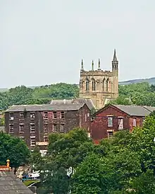 St Edmund's Church was commissioned by Albert Hudson Royds, an industrialist, banker and Freemason who belonged to Rochdale's prominent Royds family of wool merchants, financiers of the Rochdale Canal.[3] Royds acquired a crossroads at the highest point of Rochdale and commissioned the Manchester-based practice of James Medland and Henry Taylor to design and construct a new church building "at a time when Freemasonry in Rochdale was a strong force and its members were stalwarts of the local community".[3] The building was constructed between 1870 and 1873 at a cost between £22,000 (£2.07 million in 2024),[3][2] and £28,000 (£2.64 million in 2024),[1][2] at a time when a suitable parish church could have been built for £4,000 (£380,000 in 2024).[3][2]