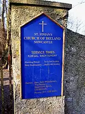 The Roman Catholic church in Newcastle, also dedicated to Saint Finian, was built in 1813.[3] Both churches, Catholic and Episcopalian, are included on the Record of Protected Structures by South Dublin County Council.[1]