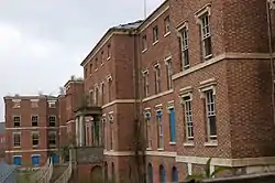 After the introduction of Care in the Community in the early 1980s, the need and desire for huge asylum style hospitals reduced and the main building closed in 1995.[2] It was subsequently converted into apartments as St George's Mansions.[4][5][6] The inpatient psychiatric facility was moved next door into more modern units with individual bedrooms and recreational facilities.[7]