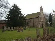 A pair of headstones in the churchyard from the late 17th century are separately Grade II listed.[2]