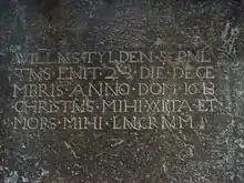 The Tyldens were an ancient landholding family in the area for at least three centuries and William Tylden's memorial stone lies set in the floor of the north chancel, showing his date of death as 23 December 1613 Samuel Lewis, in his 1831 Topographical Dictionary of England wrote of a "tower steeple and some fine remains of stained glass in the great east window."[19]