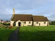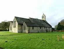 The church is constructed of limestone and cobbles. It has a four-bay nave and three-bay chancel, aisles, a south porch, and a bellcote at the west end. The bellcote dates from the 17th century and is believed to have replaced a bell tower. The west wall has a restored Norman arched window, with an oculus window above, and the south aisle has a possible Saxon window in its west wall, reset in the 13th century and restored by Scott.[4][3][2]
