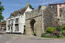 St James' Church is a ruined church in Dover, England. It was built in the 11th century and restored in the 19th century. Badly damaged in the Second World War, it is now preserved as a Grade II listed building.