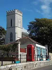 St. John's Church (also known as St John the Baptist Church) is an Anglican Church of England church in Fortuneswell, on the Isle of Portland, Dorset. It was built between 1838–40 and has been a Listed Grade II building since January 1951.[1] The churchyard walls, gate piers, railings, and steps of St. John's Church, dating from 1839–40, became Grade II Listed in September 1978.[2] At this same time, two headstone monuments, about 5 metres north east from the west tower of the church became Grade II Listed.[3]