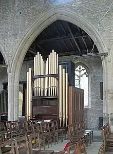 Much of the architecture is Decorated Gothic, including the chancel arch and the arcades to both the north and south aisles.[2] The north arcade is of four bays and was built in the 13th century.[2] The Perpendicular Gothic east window of the chancel was added in the second half of the 14th century.[2] One of the aisles was also rebuilt in Perpendicular Gothic, and the bell tower was added late in the Perpendicular period[2] (15th or early 16th century). There are two carved wooden screens: a Perpendicular one to the north chapel and a very well-carved Jacobean one of about 1610 to the tower.[2]