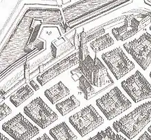 Kassel - Excerpt from Topographia Hassiae by Matthäus Merian 1655 - the Martinskirche is in the centre.