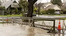 Flooding of the Ōpāwaho / Heathcote River in nearby Cashmere, signifying the similar risk posed to St Martins
