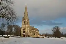 The Church of St Mary, Studley Royal, is a Victorian Gothic Revival church built in the Early English style by William Burges.[1] It is located in the grounds of Studley Royal Park at Fountains Abbey, in North Yorkshire, England. Burges was commissioned by the First Marquess of Ripon to build the church as a memorial church to Frederick Grantham Vyner, his brother-in-law. It is one of two such churches, the other being the Church of Christ the Consoler at Skelton-on-Ure.