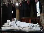 The reredos is designed by John Oldrid Scott and sculpted by Mary Grant.[8] The critic Sacheverell Sitwell condemned the design as "peerless for ugliness, unless it be for its own sister, Scott's chapel of St John's, at Cambridge".[9]