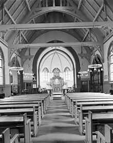 During the First World War, the church was used for the internment of prisoners of war. The chaplain, Rev Henry Haworth Coryton, ministered to the PoWs in Groningen and, as a thank-offering, Leonard A. Powell painted the three-panelled reredos. A Harrison & Harrison organ was added in 1920.[6]