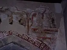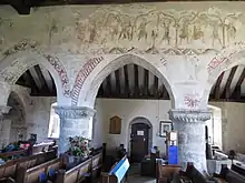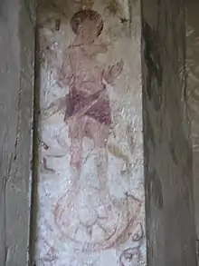 The oldest significant painting is a medallion at the east end of the south aisle. Uncovered in 1967 this has a central design of a cross in the form of an endless knot of rope. The south aisle also has 12th-century pictures of angels and Apostles.[5]