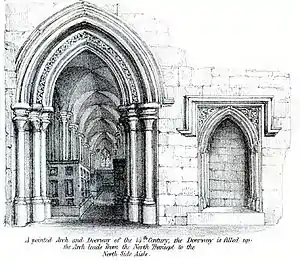 St Mary the Virgin, Aylesbury (pointed arch and doorway of the 14th century)[3]