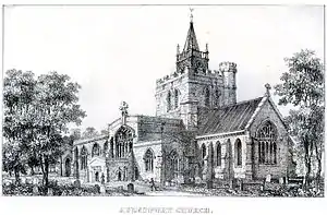 The tower of the church is crowned by a small spire which is believed to date from the reign of Charles II.[1]