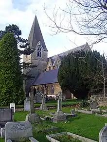 The church dates from the 15th century but was rebuilt between 1859 and 1860 by Thomas Chambers Hine and Robert Evans following a fire. Only a fragment of the tower from the 15th century building survives.