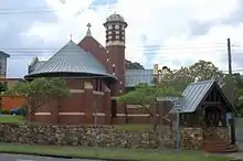 By 1922, renewed activity under Reverend George Neal saw a committee established to build the new church. A large meeting chaired by Archbishop Sharp was held in July to consider whether a new church should be built in timber or brick. The committee emphasised the need to act as soon as possible, as the present building was inadequate for its needs. The vote for a brick church was "practically unanimous".[17] St Paul's attained the status of parish in 1923 and in June 1923 the Corporation of the Synod of the Diocese of Brisbane formally acquired a new site for St Paul's on the corner of Vulture Street and Balmoral Terrace.[18][19] The elevated site, "nearer the tramline and in a more conspicuous position",[20] was consciously chosen to enhance the prominence of the church within the suburb. At a fundraising event in November, Canon Francis de Witt Batty commended the decision to bring St Paul's Church out of "comparative obscurity into the light of day", while also noting "Brisbane had awakened at last to its duty in the matter of church building".[1][21]