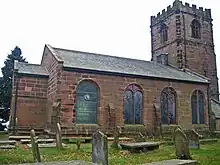 The existence of a church on the site was recorded in 1190.[7] The present west tower was erected between 1490 and 1526. The body of the church was rebuilt in stone in 1800 following a bequest from Ralph Kirkham, a wealthy merchant of Manchester. This consisted of a nave and sanctuary with no architectural division, which Richards describes as being "a poor attempt at imitation of the classical style".[5] The Egerton family of nearby Oulton Hall were benefactors of the church. Their family vault was in the church. This was sealed in 1870.[7] In 1870–71 the interior was restored by the Chester architect John Douglas, the restoration including the removal of pews, a gallery and the ceiling.[8] By 1936 the roof timbers were becoming unsafe and they were replaced by a steel roof.[5]