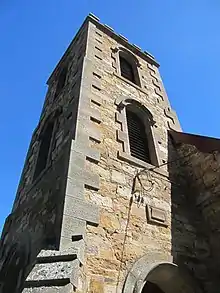 The original church included a wooden bell tower on top of the existing stone tower; however, this was demolished in the 1940s.[2] Following the opening of the new church the old one was repaired and incorporated in a Sunday School Hall. It was unfortunately destroyed by fire in 1972.[1]