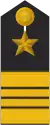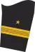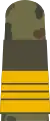 Its rank insignia, worn on the sleeves and shoulders, are one five-pointed star above two stripes with two half stripes between them (without the star when rank loops are worn).