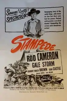Stampede is a 1949 American Western film directed by Lesley Selander and starring Rod Cameron, Gale Storm, Johnny Mack Brown and Don Castle.