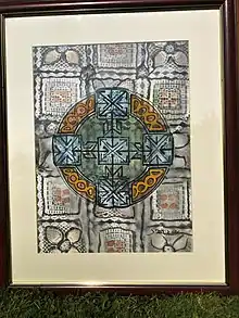 Jones said of his own work: I found much freedom in the lines of Dylan Thomas to interpret them in many different ways. I have always been interested in the cosmic-creation of the universe, the sun, the moon, stars, space and nature-things that never change and are always there. These are often referred to in Dylan Thomas' poetry My other particular interest is with Celtic symbolism; I believe this may be due to my upbringing on a farm in Pembrokeshire where I was surrounded by relics of ancient history. Consequently, some of my works are based on Celtic Crosses and Cromlechs Although most of the paintings are in watercolour, I find working in mixed media quite interesting and stimulating . In some cases, there is an element of the [printmaking] technique appearing. This mixing of media may be due to the teaching of Art and Design in a Comprehensive school.