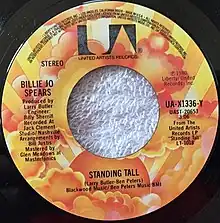 "Standing Tall" is a song co-written by Larry Butler and Ben Peters. It was originally recorded by American country music artist Tammy Wynette on her 1978 album Womanhood. One of its most notable version is a version recorded by Billie Jo Spears shortly afterward. It was first cut for Spears's 1978 album and was re-recorded and released as a single in 1980. Spears's second version reached the top 20 of the American country chart and the top ten of the Canadian country chart. "Standing Tall" would later be re-recorded by several artists, notably Lorrie Morgan, who released her version as a single in 1995.
